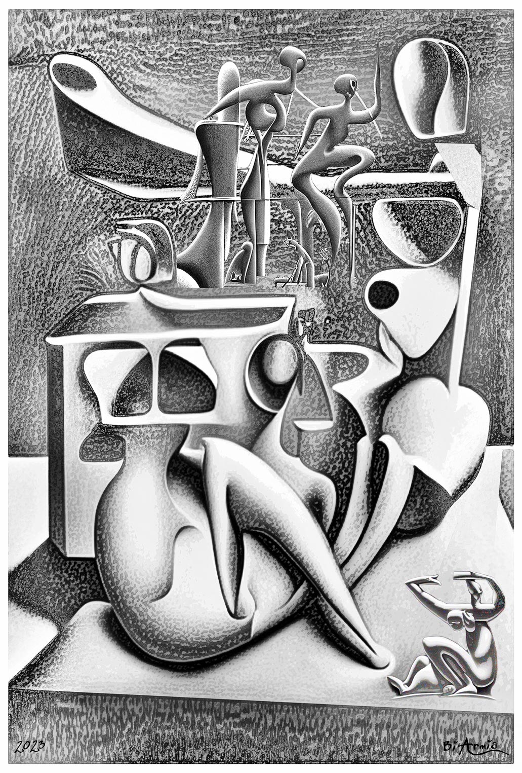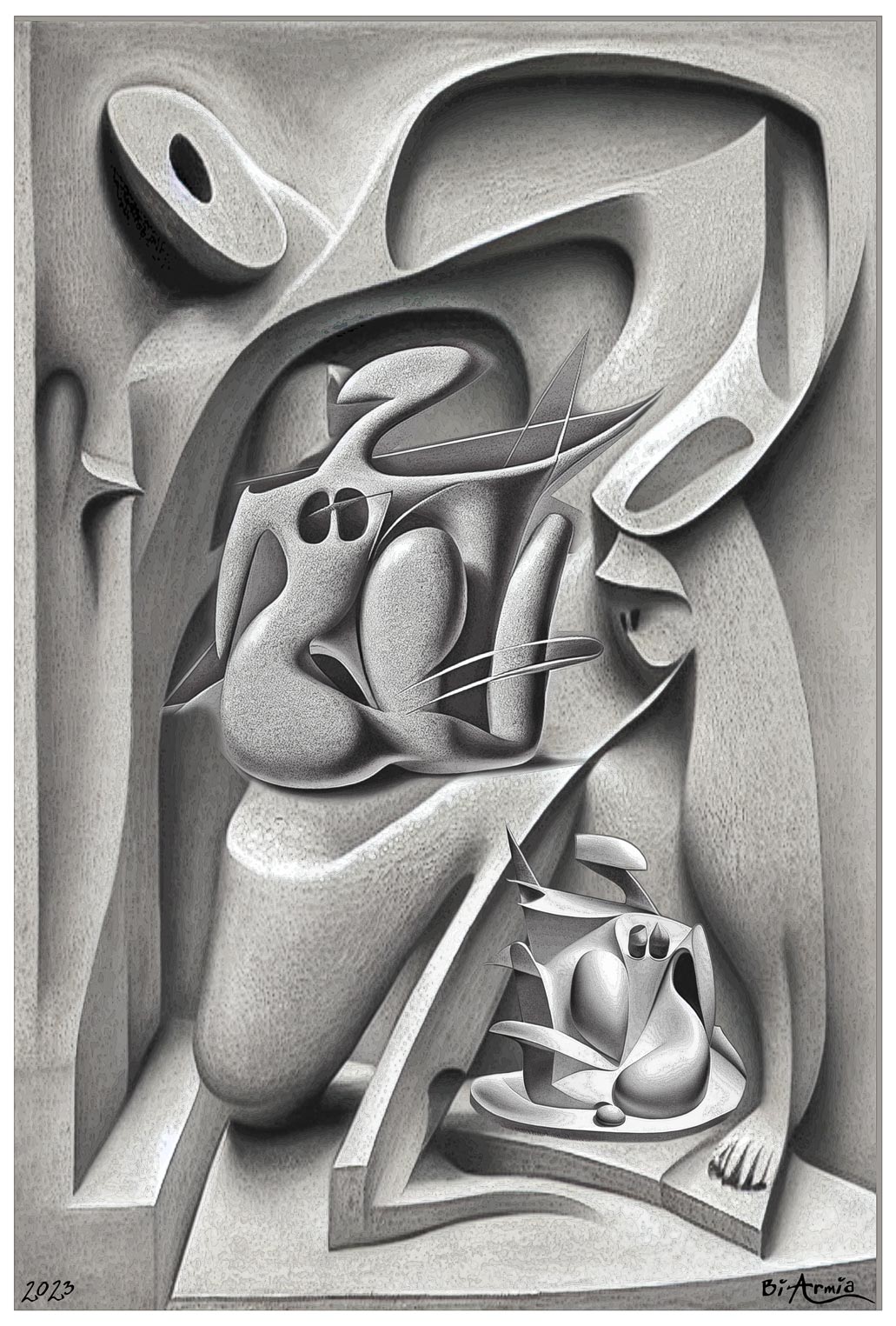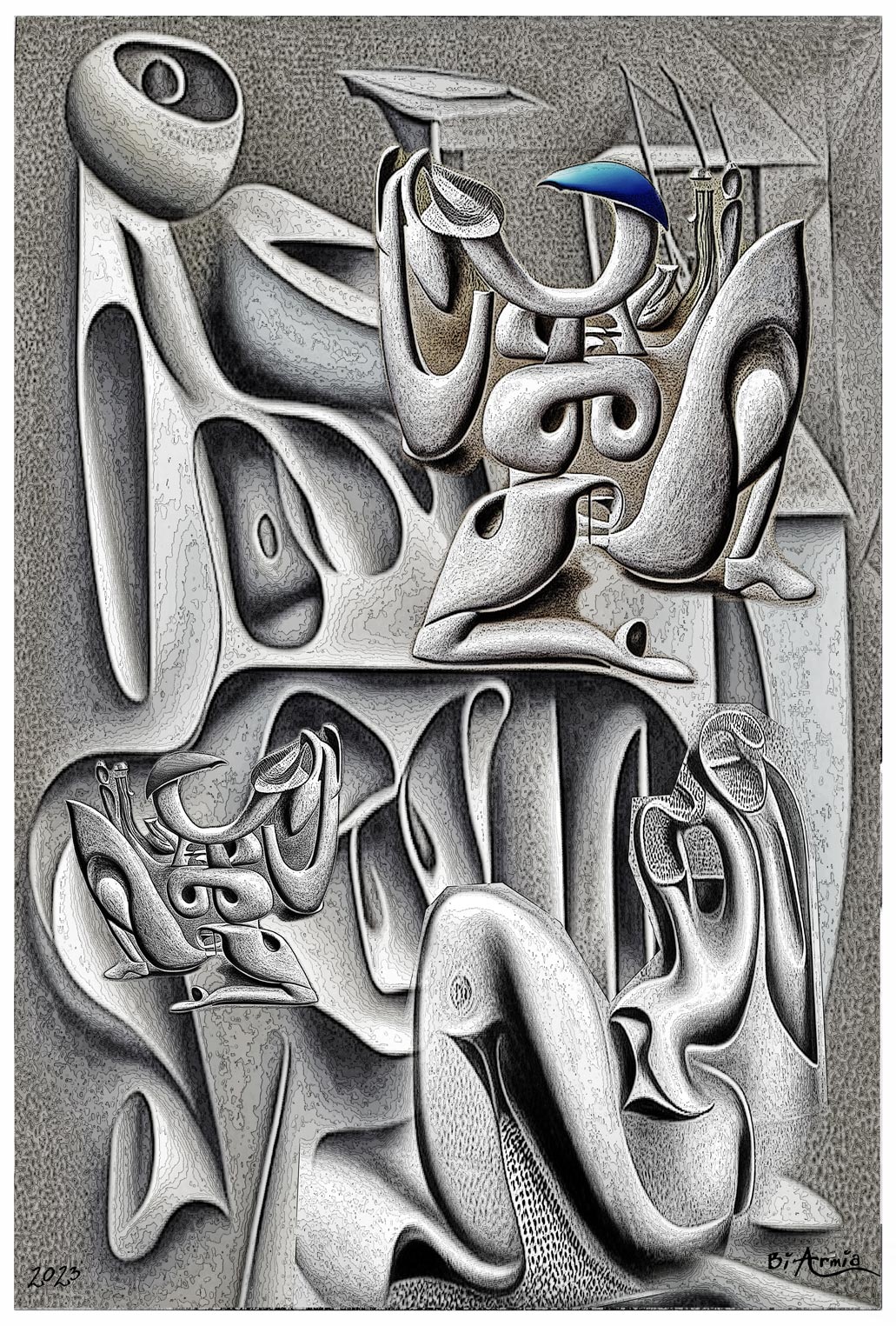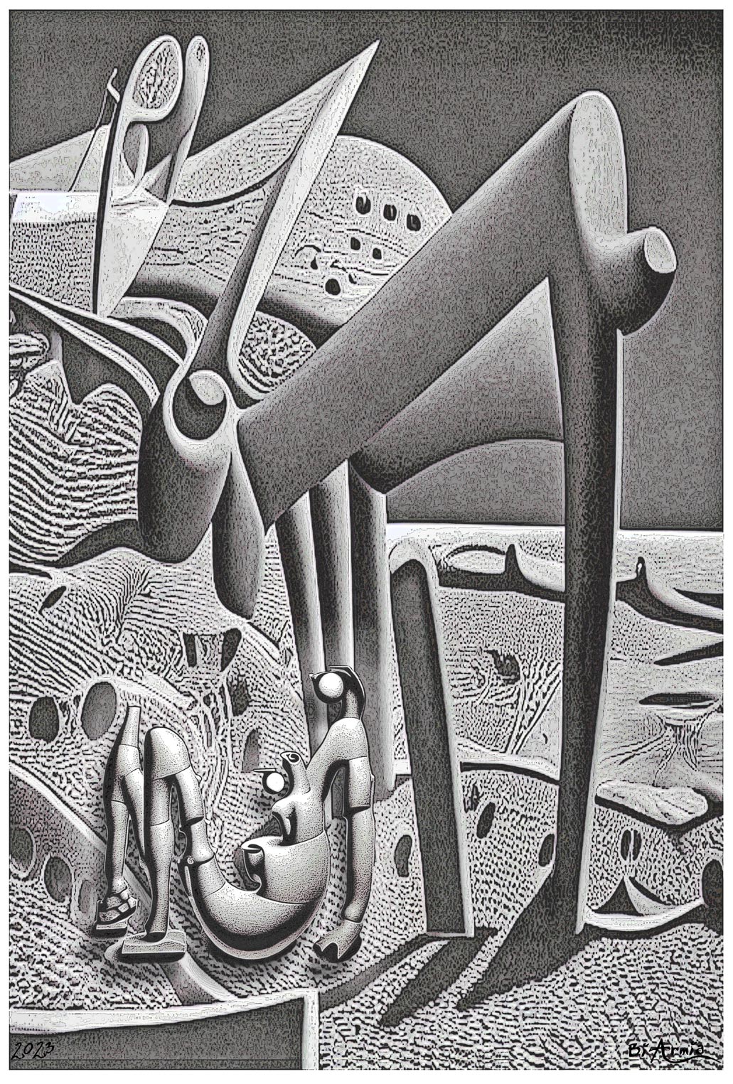 The designs mirror memories dismantled and reassembled, forming engineered identities through intricate drawings.