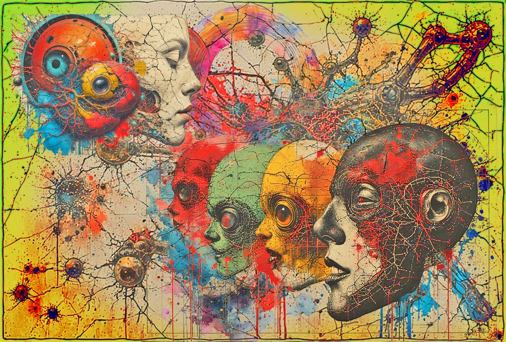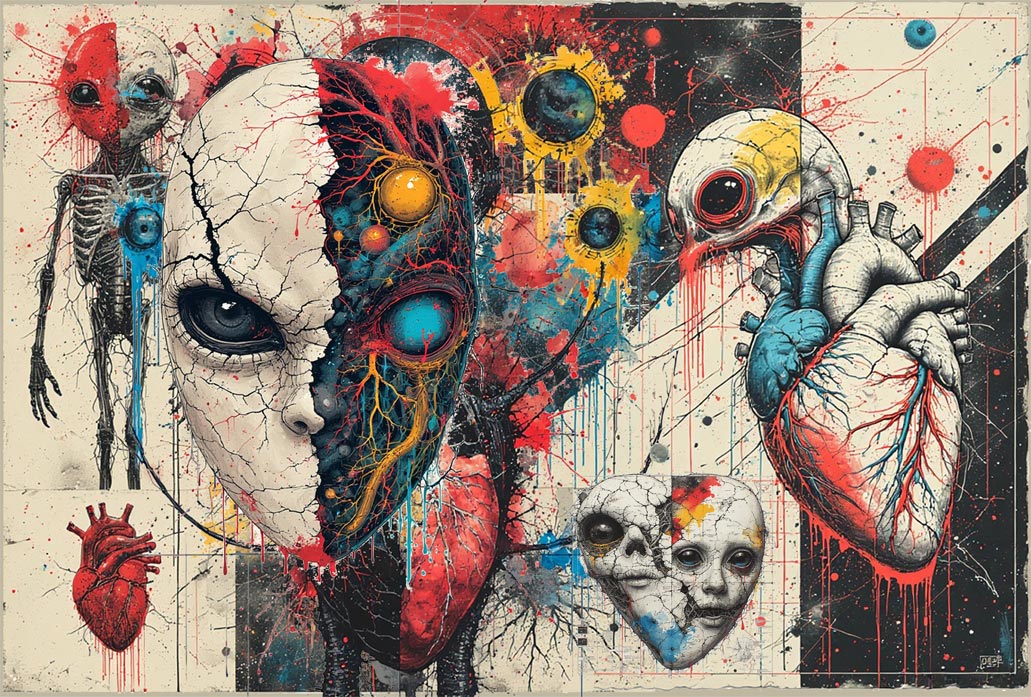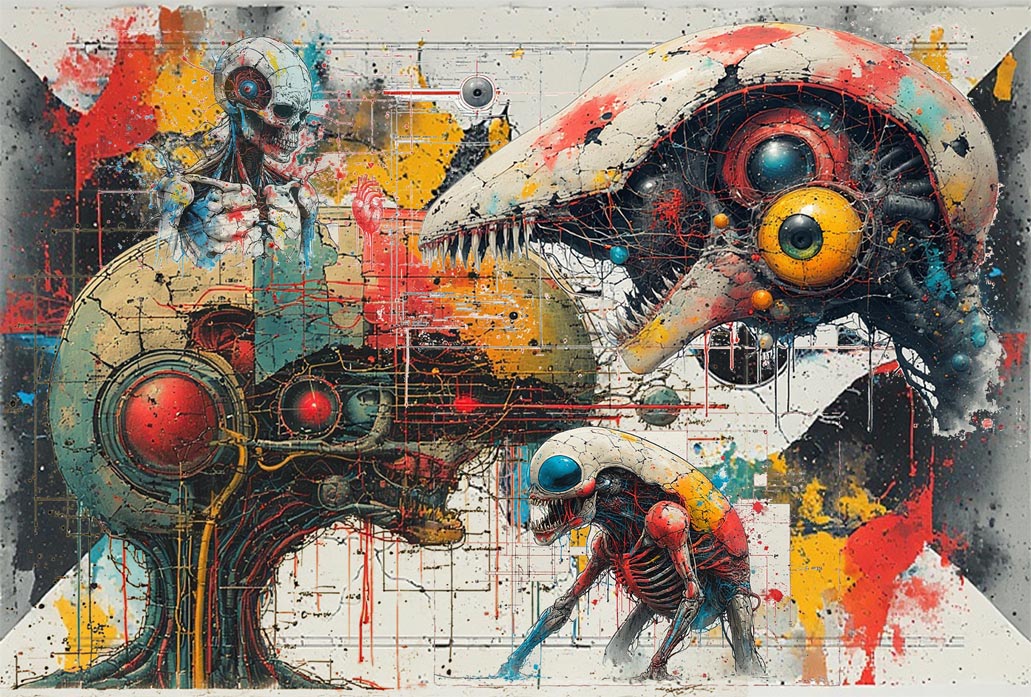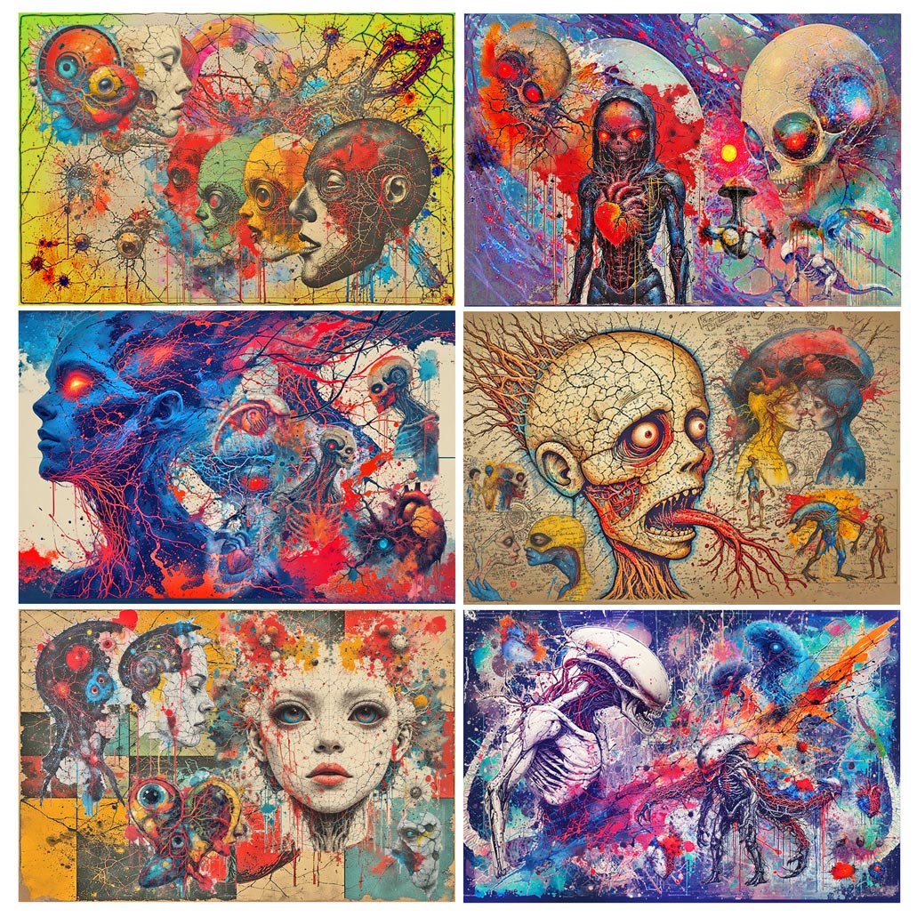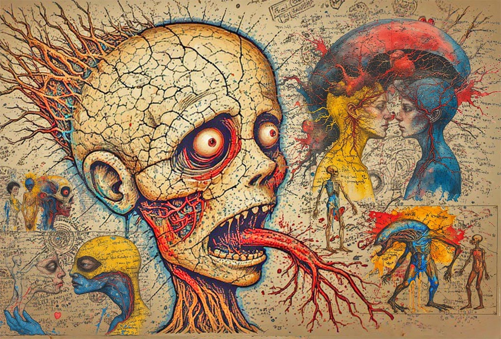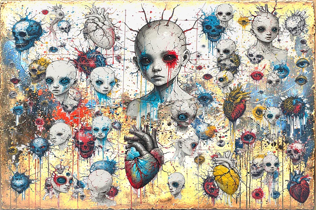 Step into the world of the Mutant Genome Mint collectible archive, a treasure trove of unique and constantly changing emotional relics. Traditional human figures are transformed into surreal Alien abstractions in this collection, creating a diverse series of visual representations that repeat throughout.
