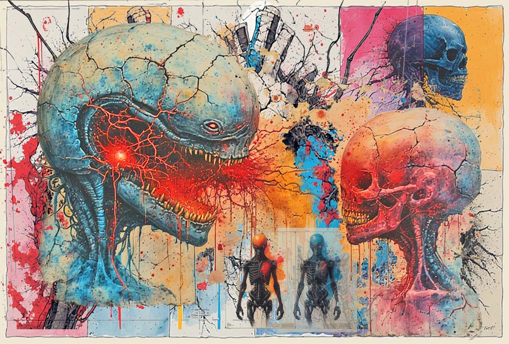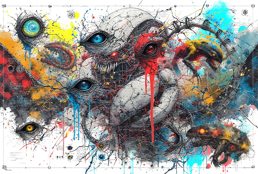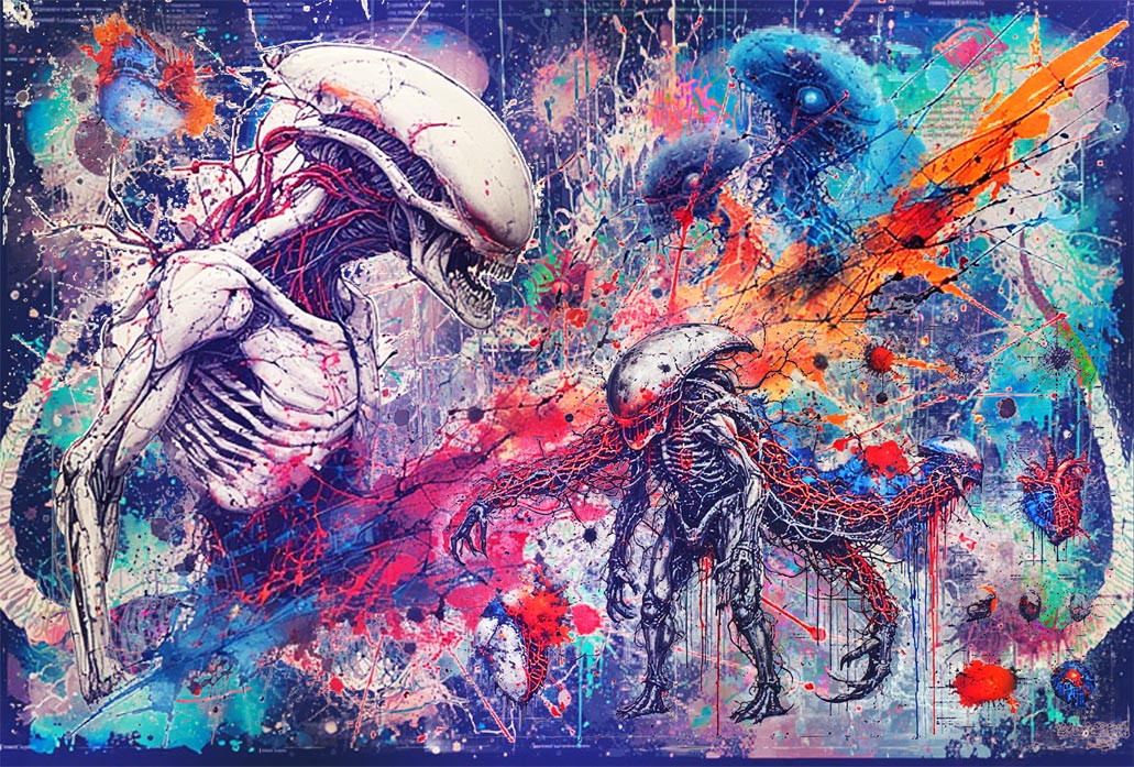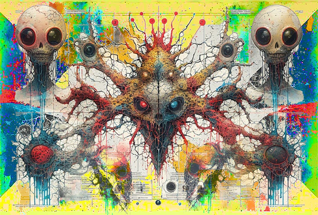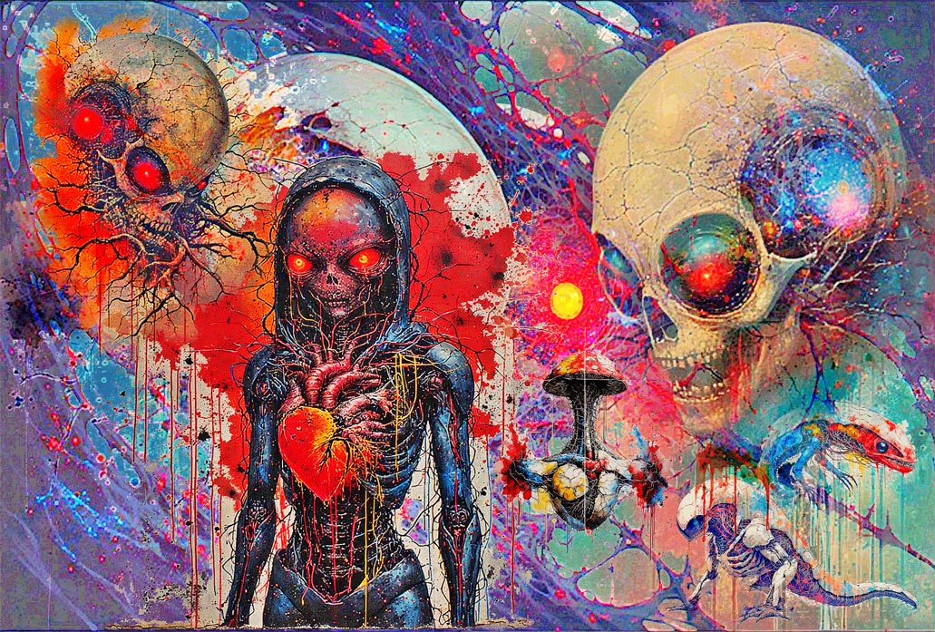 Step into the world of the Mutant Genome Mint collectible archive, a treasure trove of unique and constantly changing emotional relics. Traditional human figures are transformed into surreal Alien abstractions in this collection, creating a diverse series of visual representations that repeat throughout.